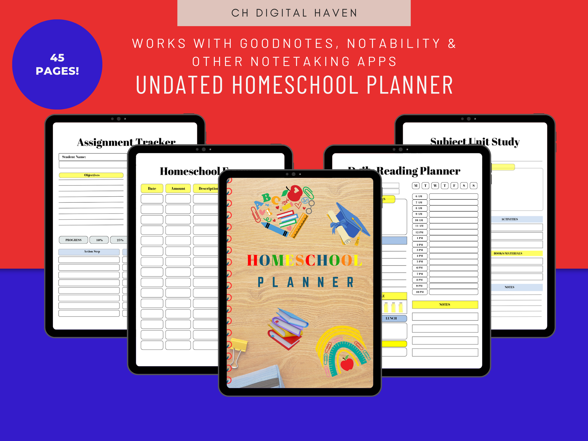 Start your homeschool journey on the right foot. Download your Undated Digital Homeschool Planner today and take the first step toward a more productive and enjoyable learning experience!